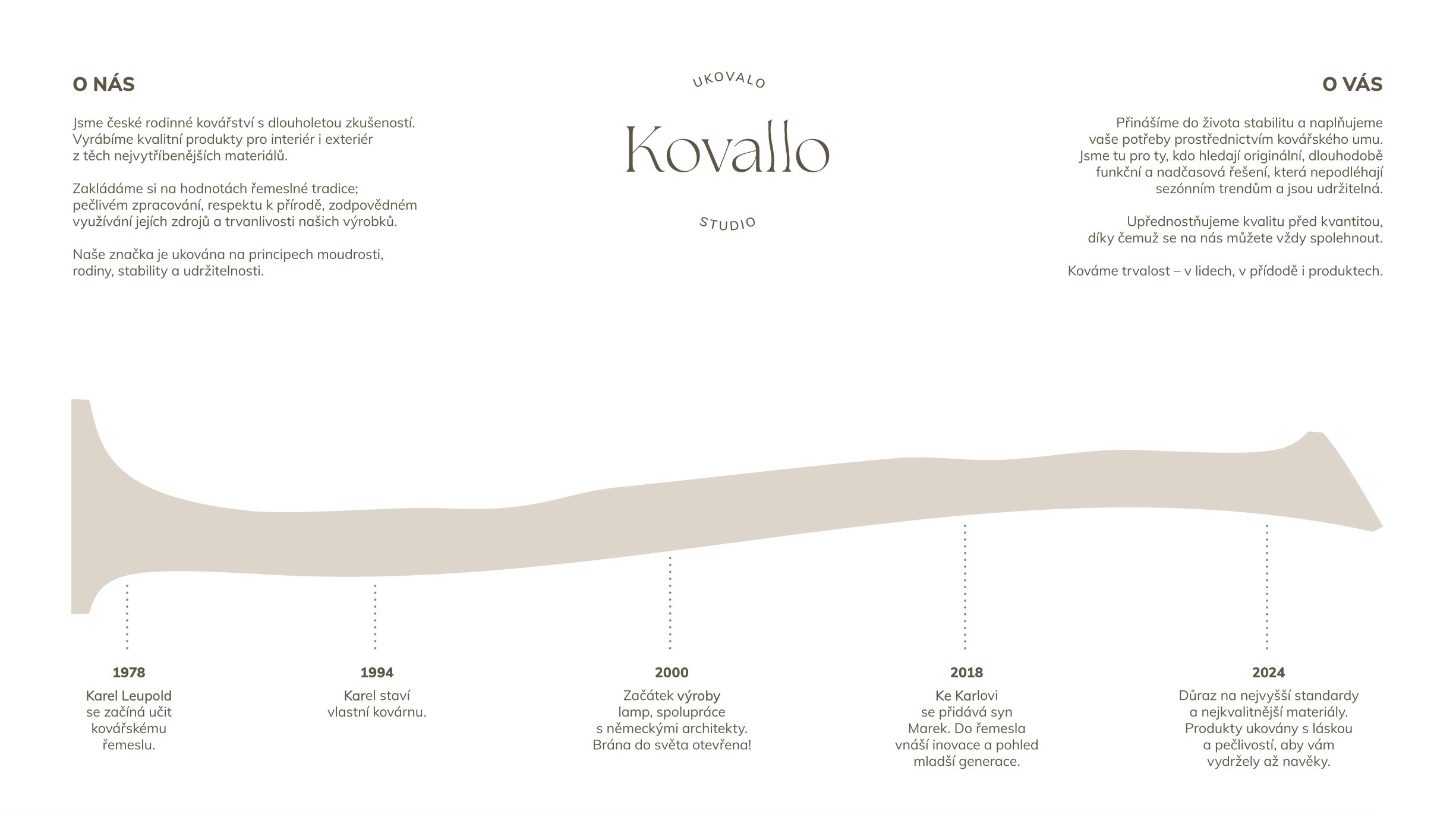 Kovářství Leupold, s kořeny hluboko zapuštěnými v půdě malebné české vesničky, funguje už desítky let. S příchodem nové generace ale přišel čas na rebranding a změnu produktového portfolia. Hledali jsme nit, která propojí tradici s modernou, a našli jsme ji v úctě k poctivému řemeslu a v síle trvalých hodnot. V době, kdy se svět mění před očima a konzumní vlna zaplavuje trh lacinými produkty, totiž mohou být kované výrobky stabilním a udržitelným bodem. Ač nejsou vyráběné dokonale přesnými stroji, vydrží stovky let, a nejen v tom tkví jejich krása.